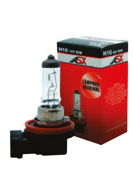 Lámpara de tecnología Halógena, con un conector H16 (base PGJ19-3), 12 Voltios y 19 Vatios, usada comúnmente en los faros antiniebla, ofreciendo luz blanco-cálida o neutra.